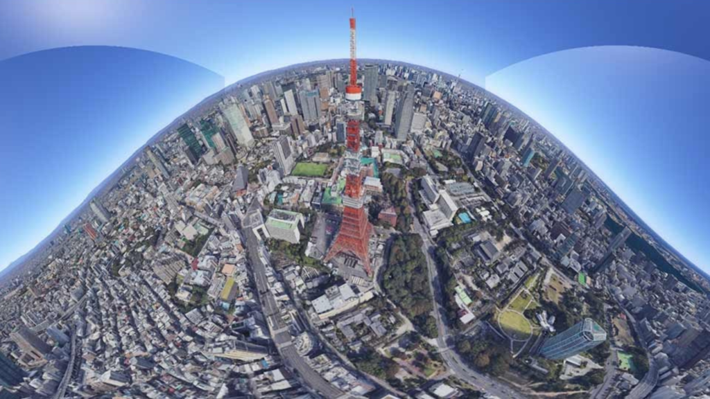360°VRは、どこにいても、まるで現地にいるかのような臨場感を楽しむことができます。VRゴーグルがなくてもPCやスマホでYouTubeを見ることが視聴可能です。Google Earthで空撮カットも作成できます。